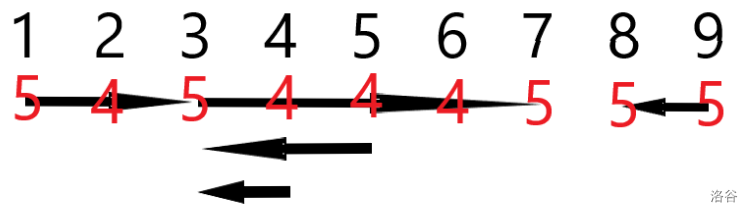 先考虑"全集"线段的子线段,容易发现它们的端点和它们未覆盖的点的最大值均为 ,而线段内部的点(不含端点)最大值被限制为 ,即线段内部的点的最大值要 ,如图所示: