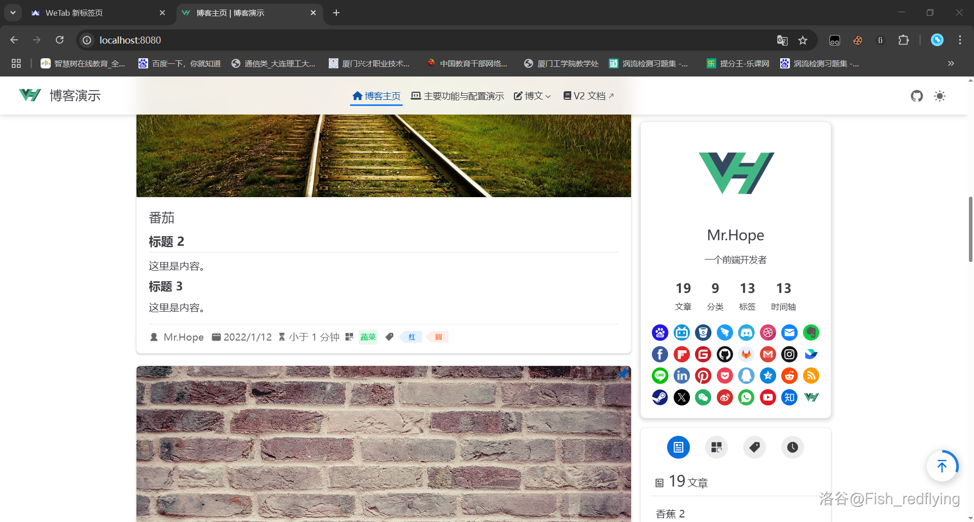 本教程采用的博客搭建基于 vuepress 生态系统,我将用 Hope 主题做示例。