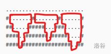 立体光刻(SLA)是一种 3D 打印技术,通过激光逐层将液态材料固化成固体物体。在本问题中,我们将考虑 SLA 的二维简化版本,其中打印对象的设计可以表示为一个由 和 字符组成的矩形网格, 表示被对象占据的网格单元, 表示空白区域。例如,以下是一个 的设计: