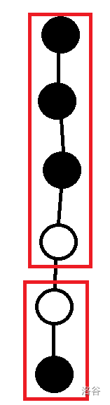 现在再来考虑对于这样的一种划分方式染色,也就是让每一条链的端点处存在一个白点。