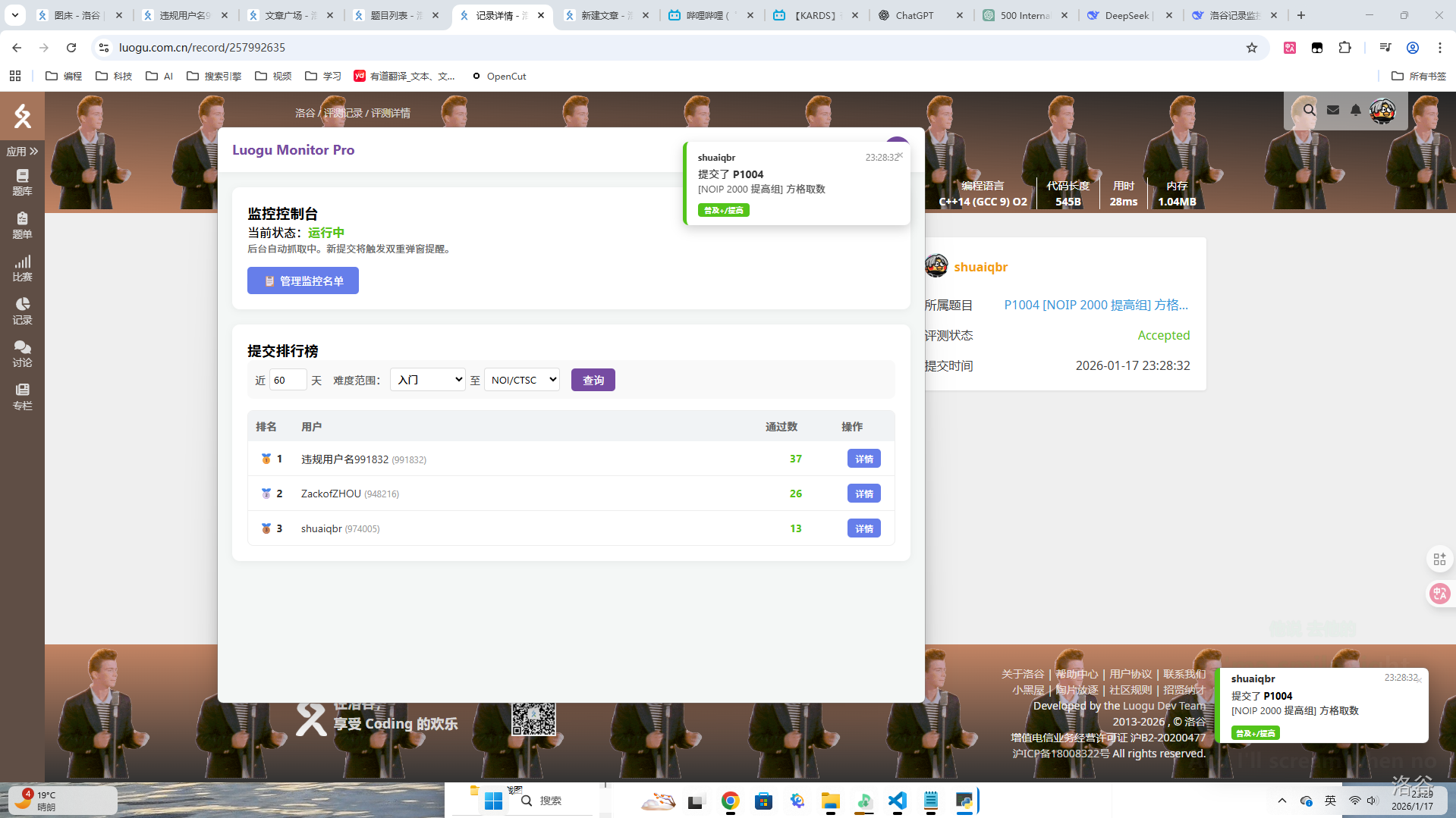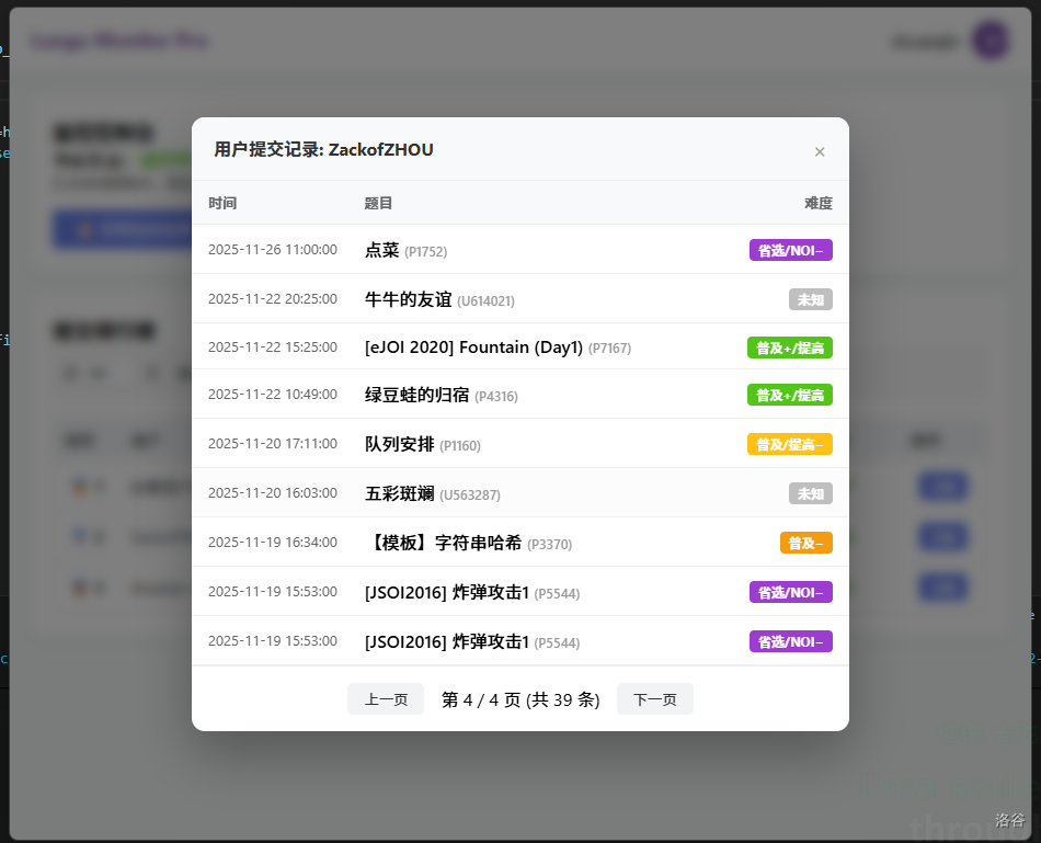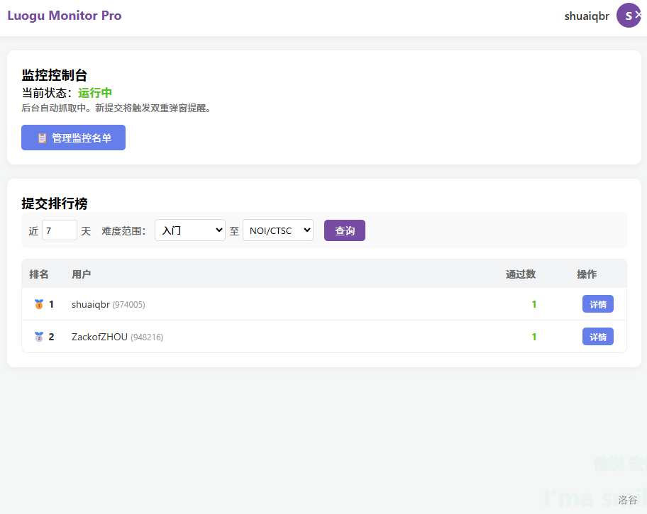 - 弹窗通知:当监控列表中的用户通过新题目时,系统会弹出桌面通知