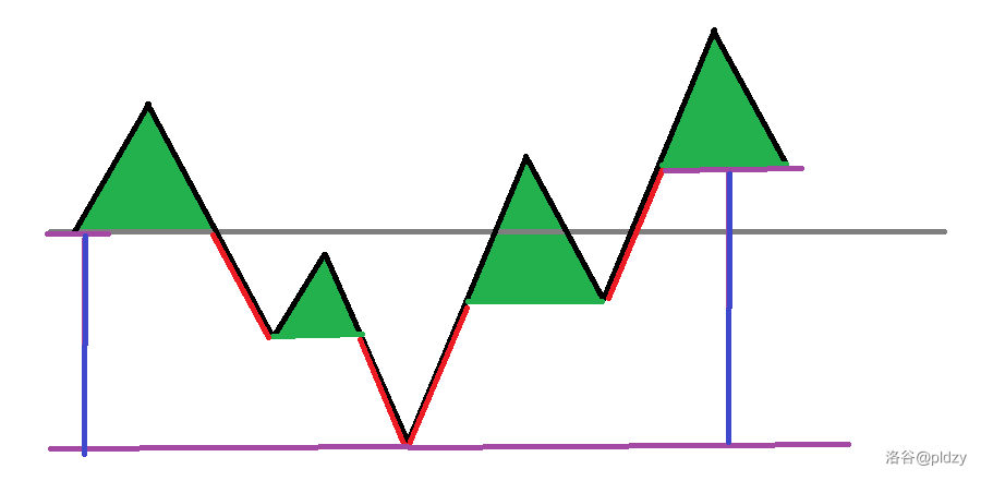 所以最后的答案就是区间长度 减去 剩下无法继续匹配的折线的长度。