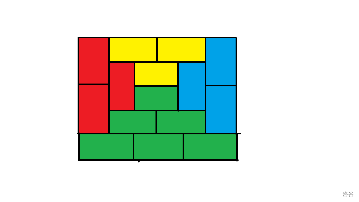 再经过一些手玩,可以猜测合法的构造一定是把若干个上面的图形拼成一行。