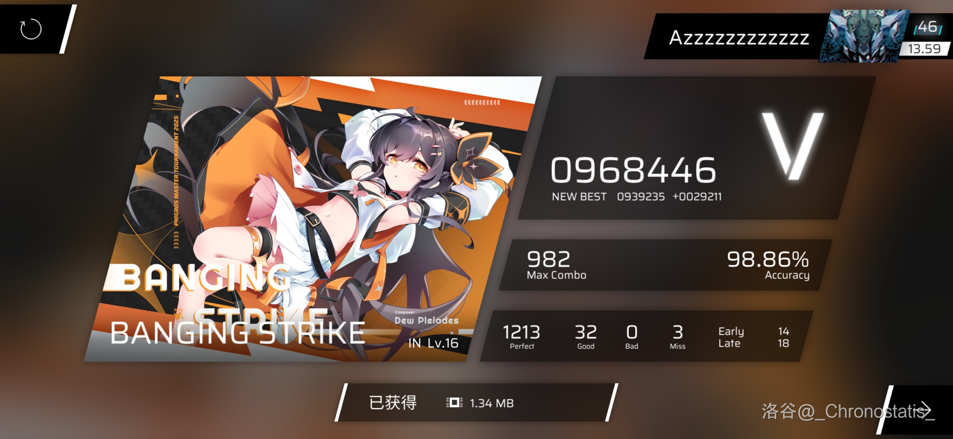 另:晚上解了 BANGING STRIKE 的 AT。今年 PMT 曲 AT 比去年 BQ 难,但 IN 怎么成次难度了 /yiw。附一图: