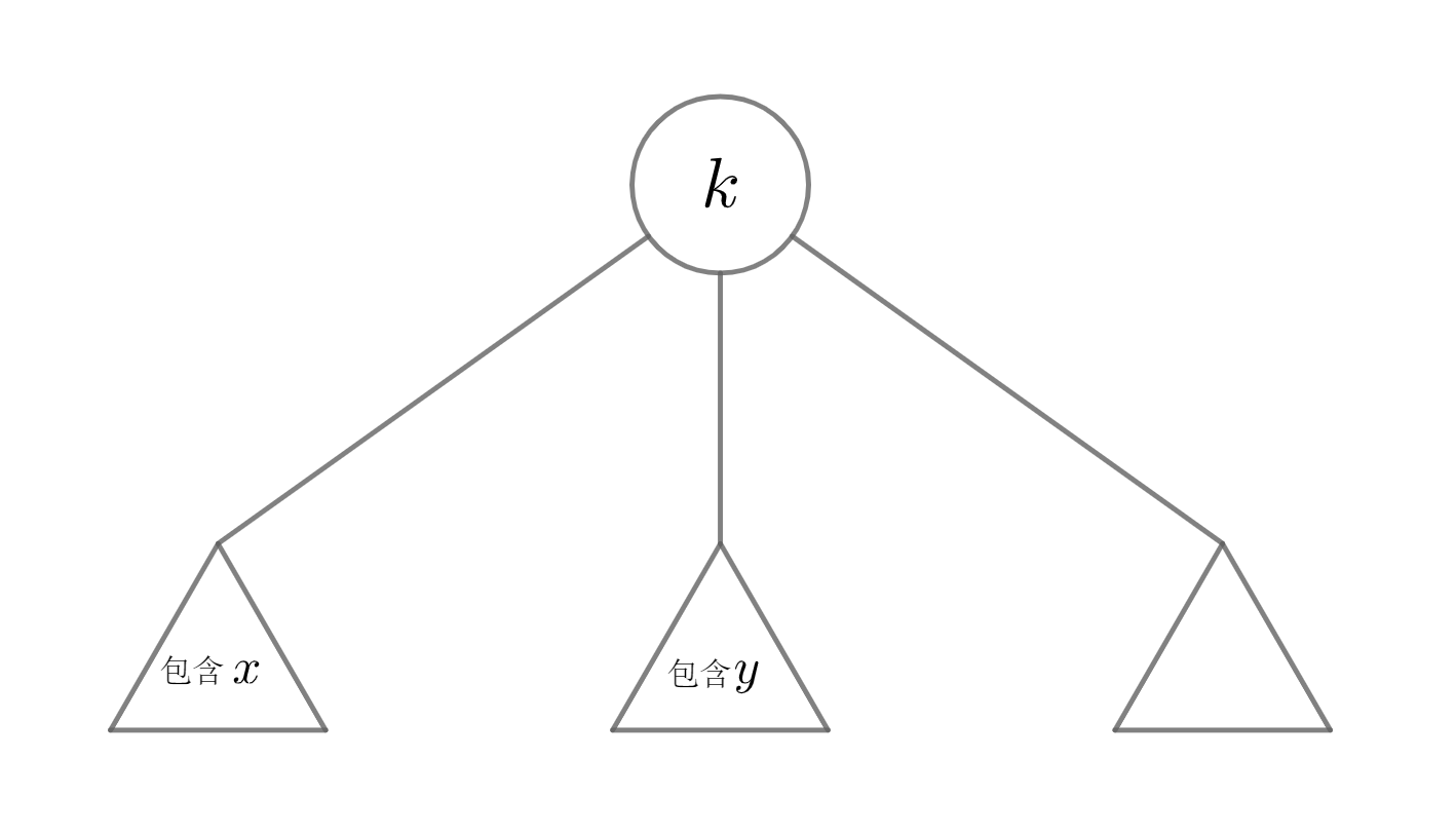 依次枚举 的某一子树,将前面算过的子树中的结点插入到一个 set 里。若 在这一子树,我们只需要在 set 中找前驱后继就是支配对。