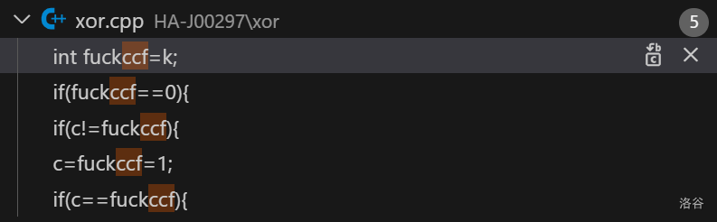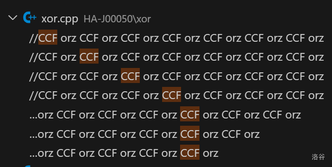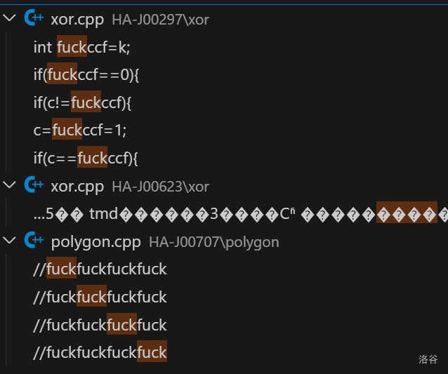 xor.cpp中取得了最暴戾语言(J)奖!总共提到了F**K 次!本奖项的第二名为 HA-J00707 的