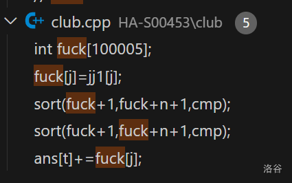 club.cpp中取得了最暴戾语言(S)奖!总共提到了F**K 次!
