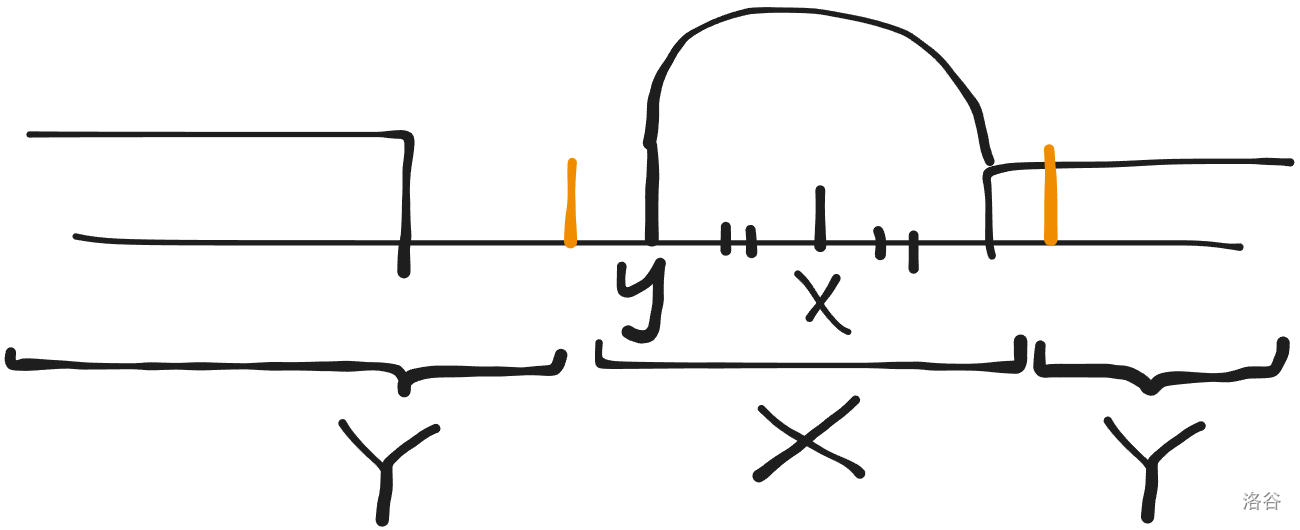 考虑 增加 的变化,从 中取两个点(橙色位置)加入 。原本 内部点的相对排名不变, 和橙色位置的相对排名不变, 与剩下的 之间的点的相对时间增加 。