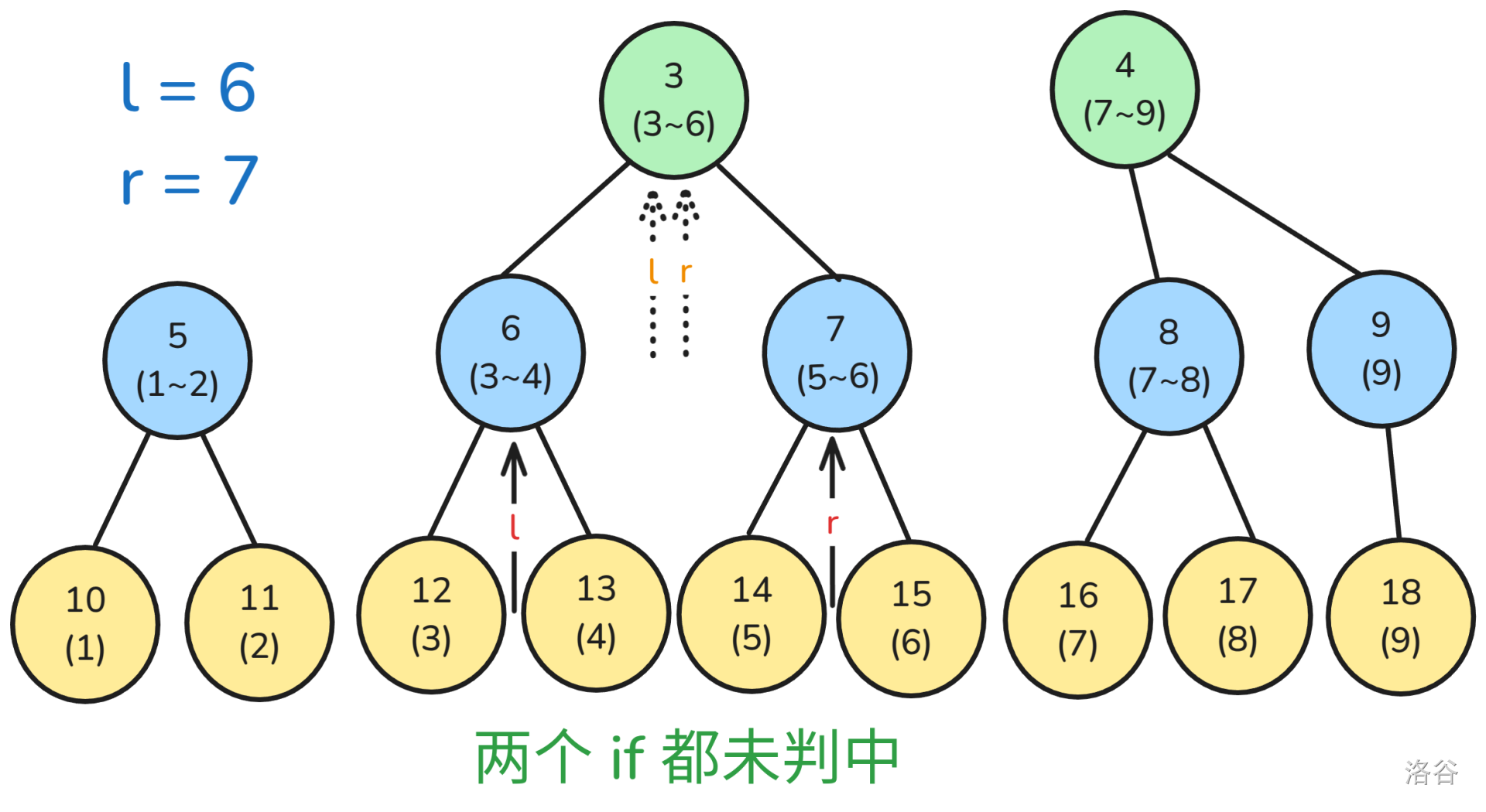 l >>= 1,r >>= 1;//往上找父亲节点的范围