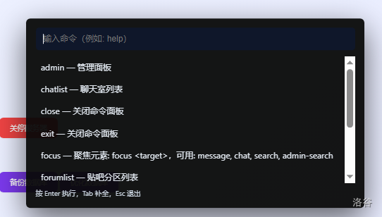 :呼出命令面板,快速操作。 -