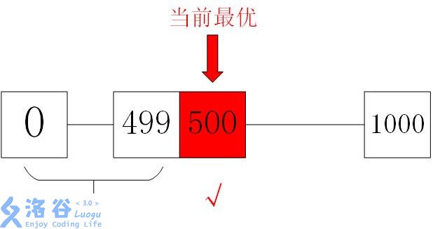 那么,此时这个成本的取值范围就是0~你所拥有的全部银子(假设为1000)。然后,我们取这个区间的中点(500),计算500块可不可以让革命成功,如果可以,那么我们下一步就要检查0~499元这个区间(因为500可以,那么比500元更多的钱必然可以),对0~499这个区间做同样处理的同时记录当前最优的500元。