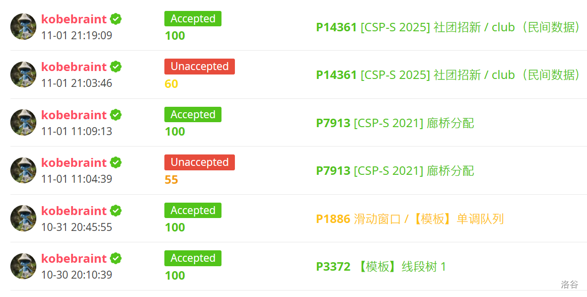2025/11/01 22:00(UTC+8) 此时的我,正在家里写着这次 CSP 的游记。时间倒流 90 个小时,这周二的 18:00,坐在机房的我,还在一边听着歌,一边和同学们讨论着即将到来的 CSP。没有人知道这次比赛的题目是什么,没有人知道周六的那天下午会发生什么,而五天后的我们即将带着勇气、信心与对未知的好奇,前往赛场,一探究竟。