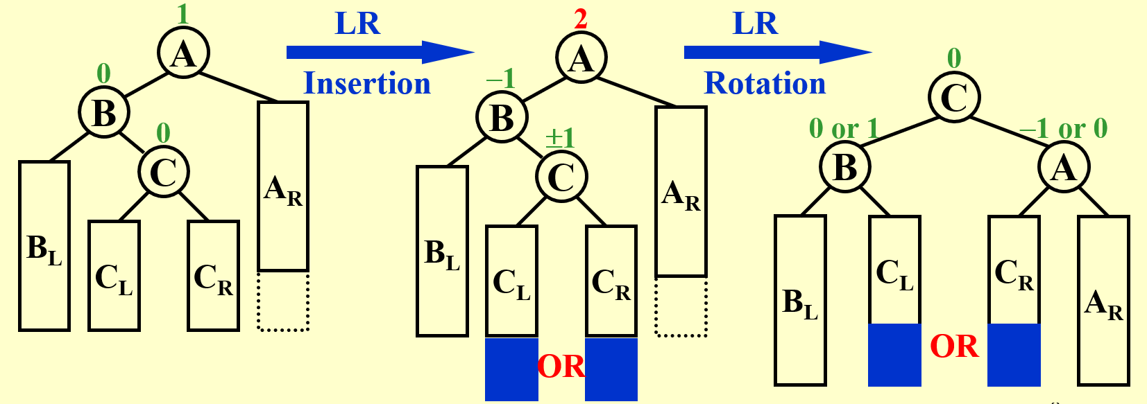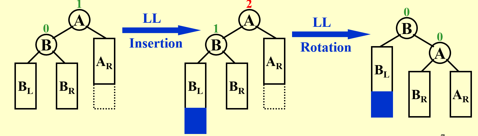 - 如果高的那个子树(是唯一的)向上两层朝向一致,则旋转父节点一次