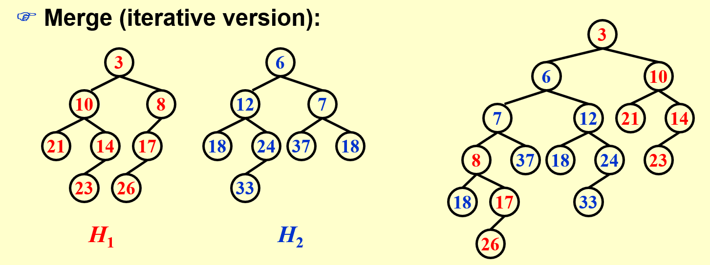 merge(ls(H1),H2)) - 合并之后堆的根节点为