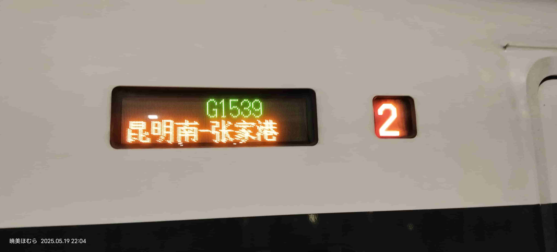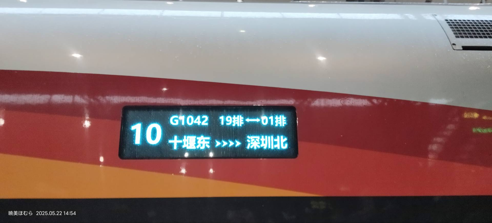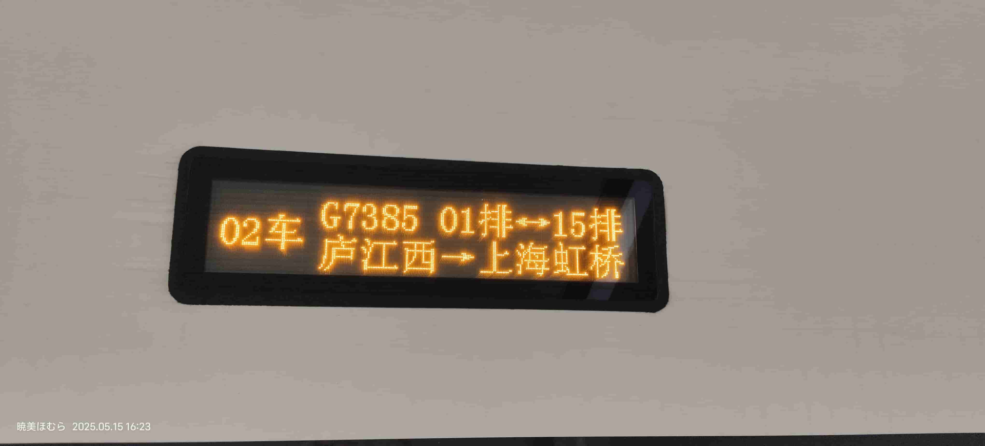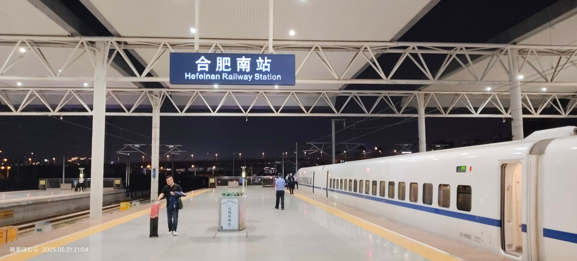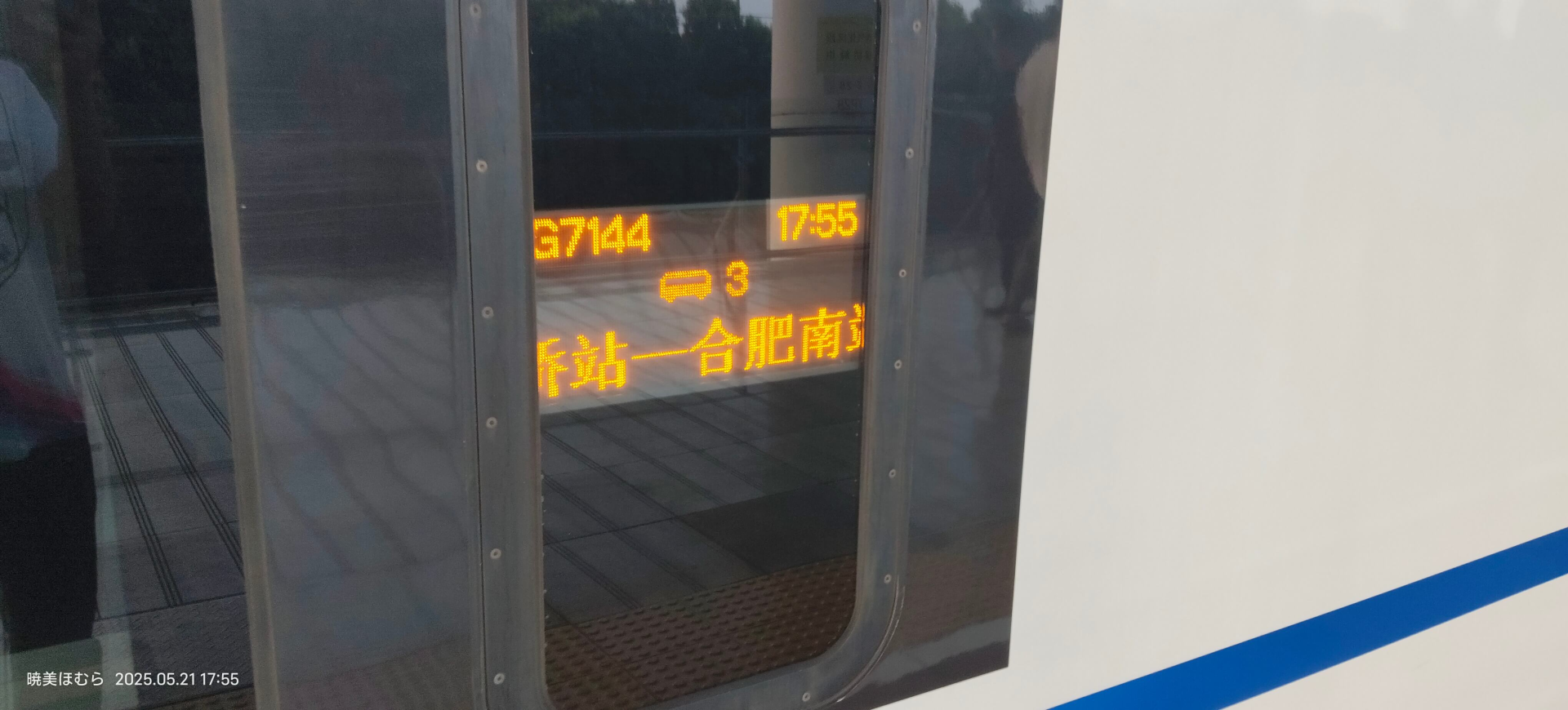 乘坐 前往汉口站。途中身份证掉在座椅夹缝里了,拜托乘务员把座位拆了才取出来。在经停合肥南站的时候拍了几张: