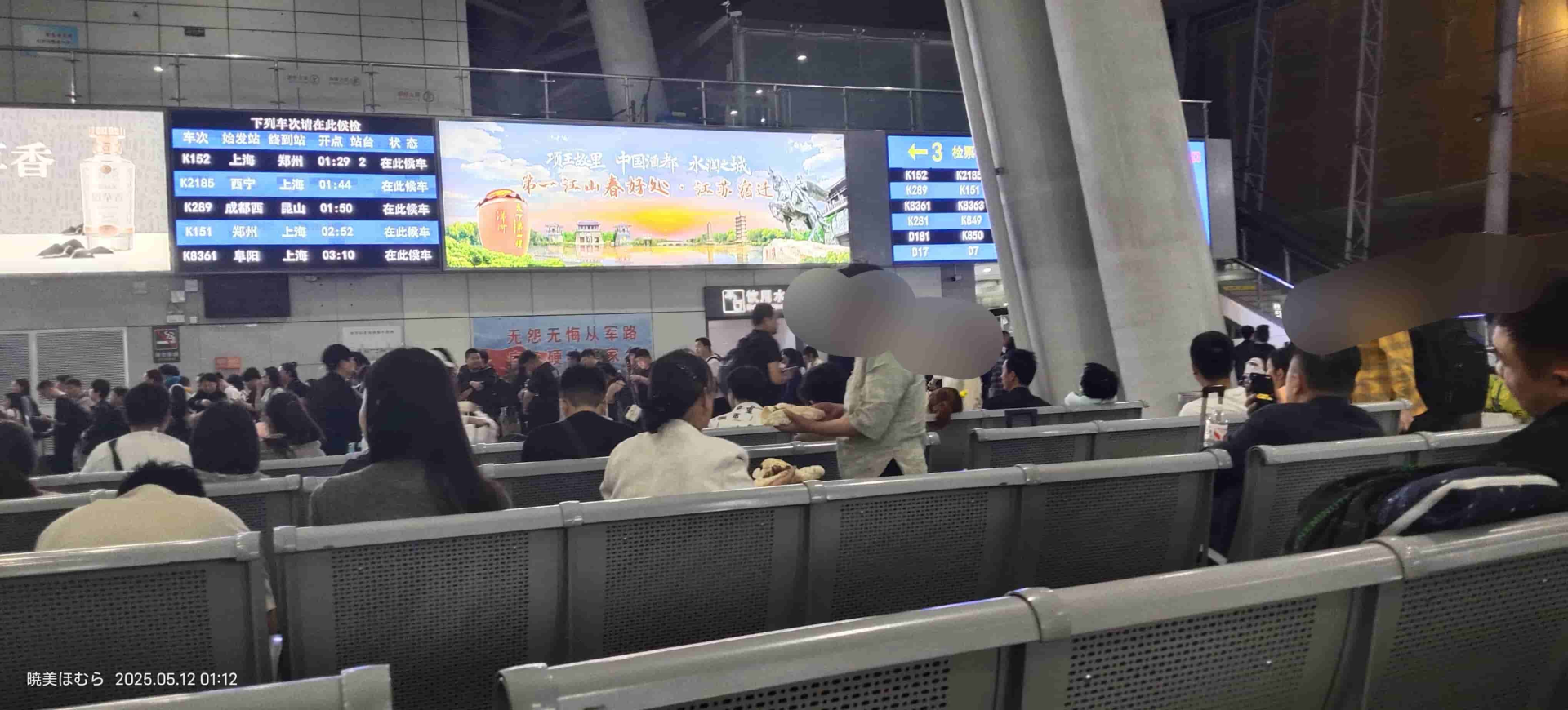 (01:12 的南京站南广场候车室。可见人还是相当多的。)
