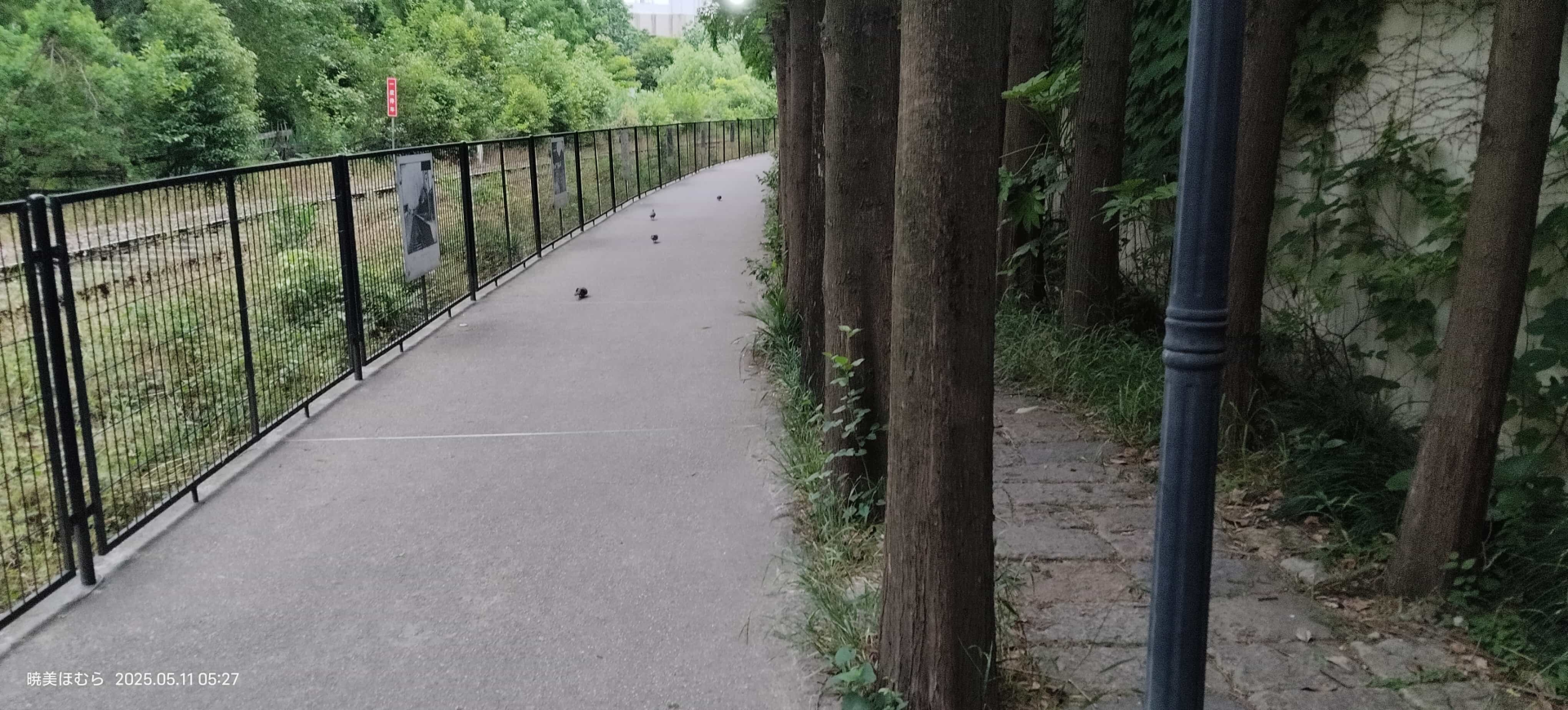 (去地铁站的必经之路。这条铁轨有时候会走货车,由于前面是铁路道口所以要「一度停车」。可以注意到路上有可爱的小鸟。)
