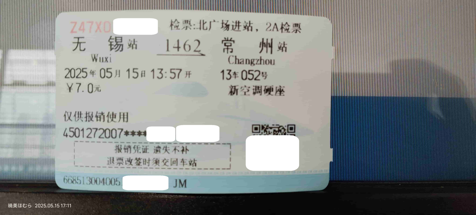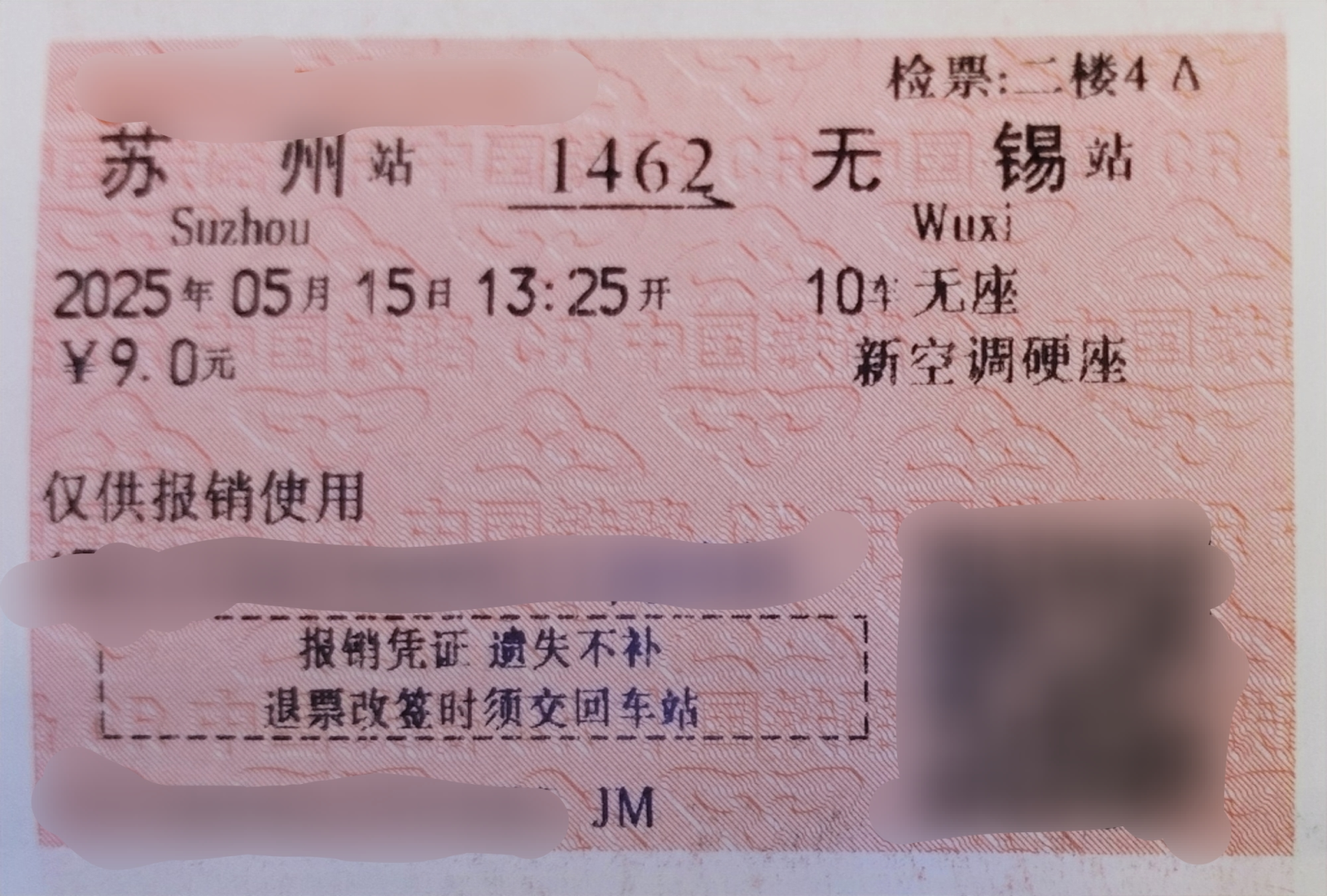 由于我之前买了无锡到常州的硬座,临时改变行程之后苏州到无锡的硬座已经售空了,只能被迫买了无座票。