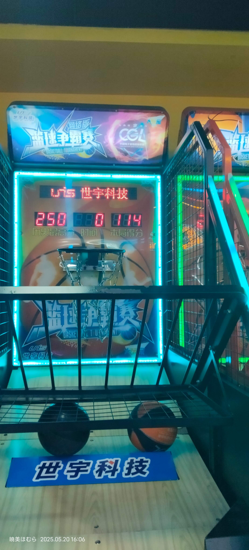 楼上有舞萌机,但是机况很烂。由于要耗完币所以在机厅疯狂投篮 /se