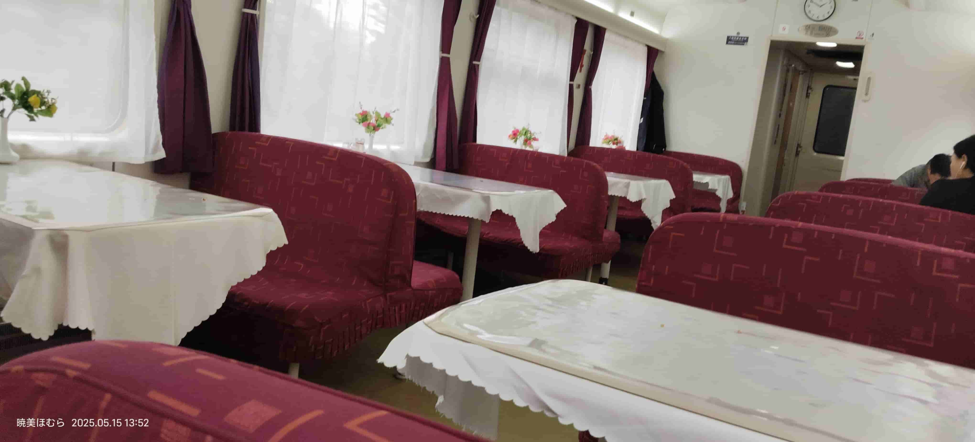 由于饭点已过,加上列车员不让人随意进来,餐车其实没什么人。其实你买这一盒盒饭可以在这里坐一下午,非常舒适。之前提到我买了苏州到无锡的无座票,最终我全程坐在了这里,总之比拥挤吵闹而且还有奇怪气味的的硬座车厢好多了()