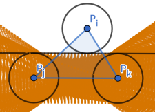 分别以 为圆心,最短高长度的 为半径作圆。不妨设 为最长边,由定义 平行于 的中位线为三圆公切线。