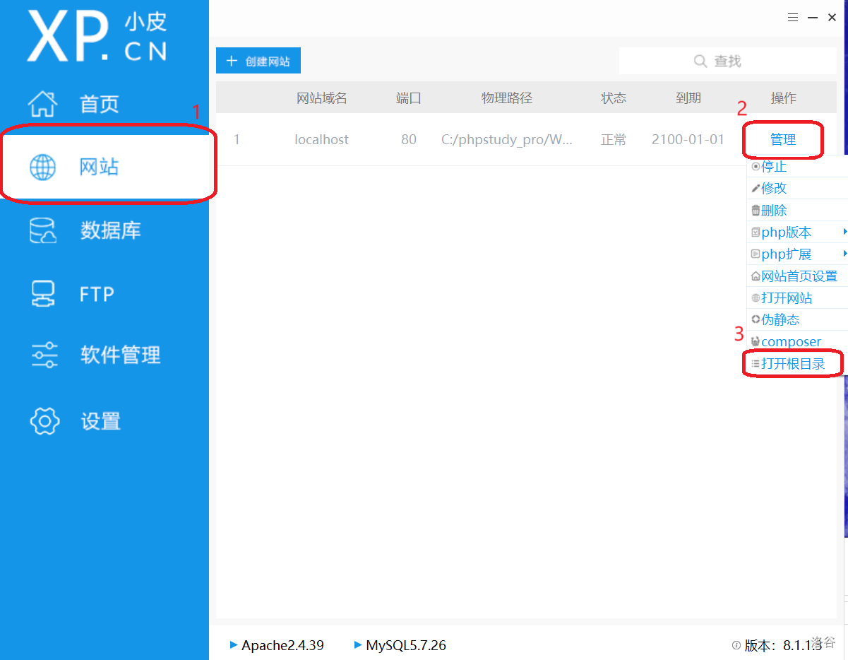 如下图,依次点击以下按钮,可以打开网站根目录。