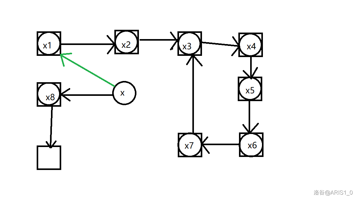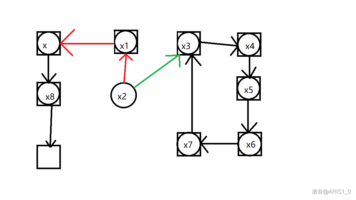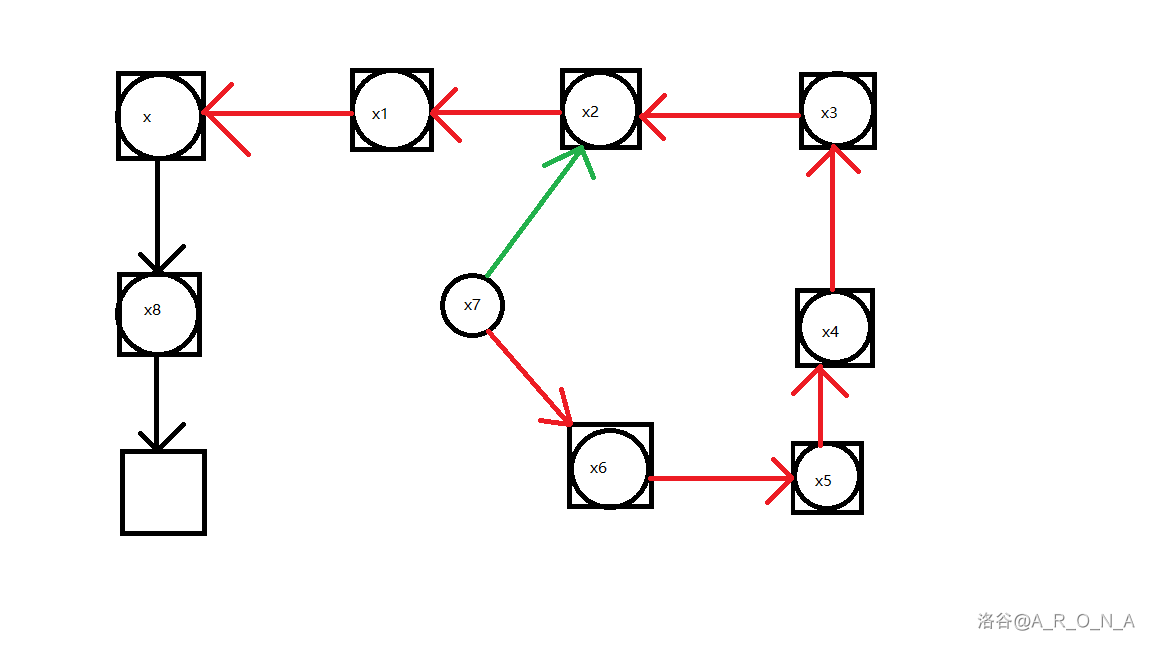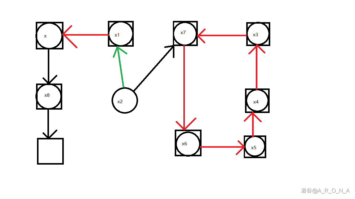 我同时对边进行了染色处理,红色边表示这条边经过了反转,绿色表示我们即将沿着这条边存储进一个位置。