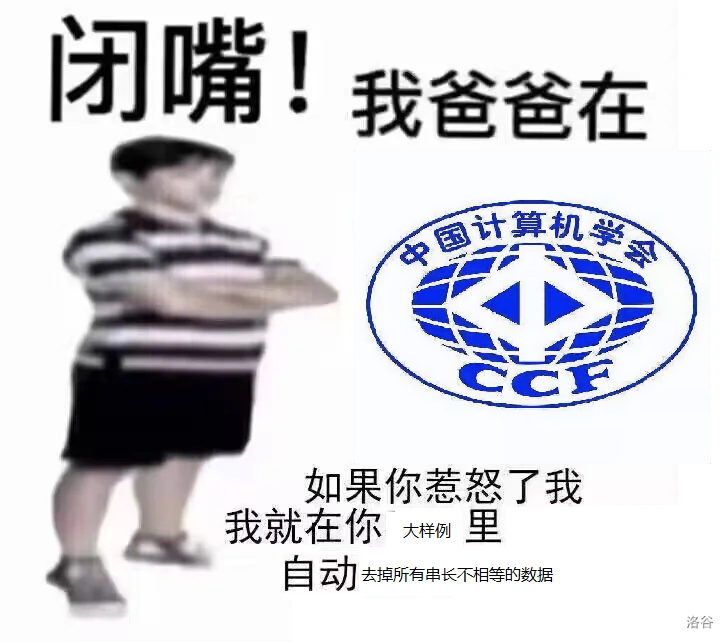 肚子的一到店,所有人便都看着他笑,有的叫道,“肚子的,你又收钱了!”他不回答,对出题人说,“卡掉不判串长不相等的。”便排出九文大钱。他们又故意的高声嚷道,“你一定又收了几千万了!”肚子的睁大眼睛说,“你怎么这样凭空污人清白……”“什么清白?我周六亲眼见你在 CCF 数钱,OIer 被你的题吊着打。”肚子的便涨红了脸,额上的青筋条条绽出,争辩道,“我堂堂 CCF 主席不能算收钱……报名费!……读书人的事,能叫收钱吗?”接连便是难懂的话,什么“城市化”,什么“面试”之类,引得众人都哄笑起来:艾斯爱慕内外充满了快活的空气。