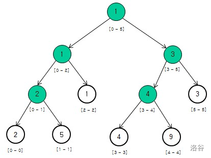 如图,将一个线性区间建成一棵树。