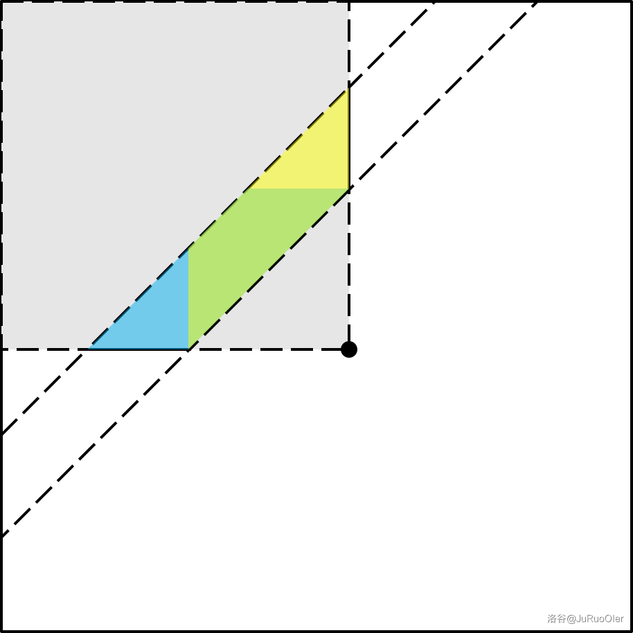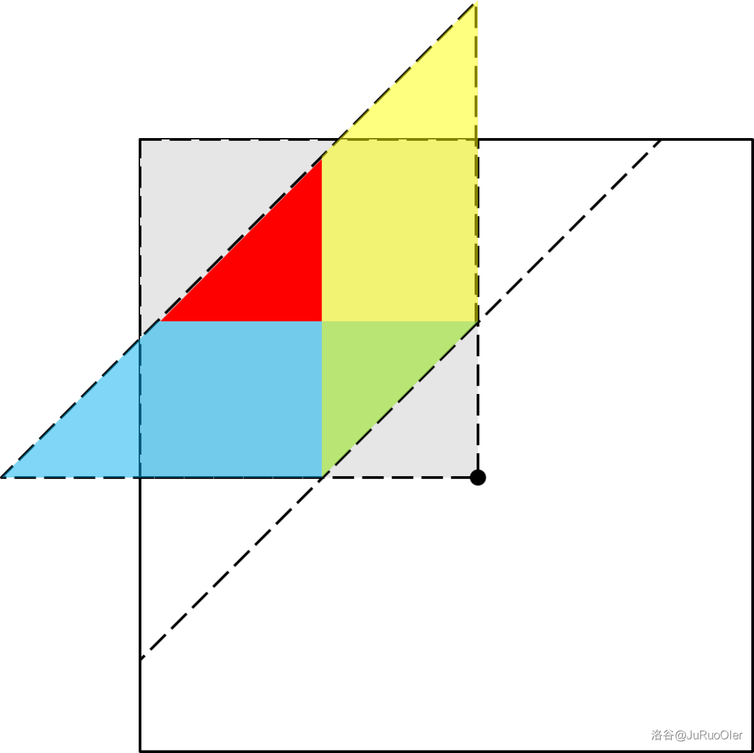 而我们刚才那个东西求出来的是一个平行四边形(下图中黄色、蓝色的部分分别可以求出):