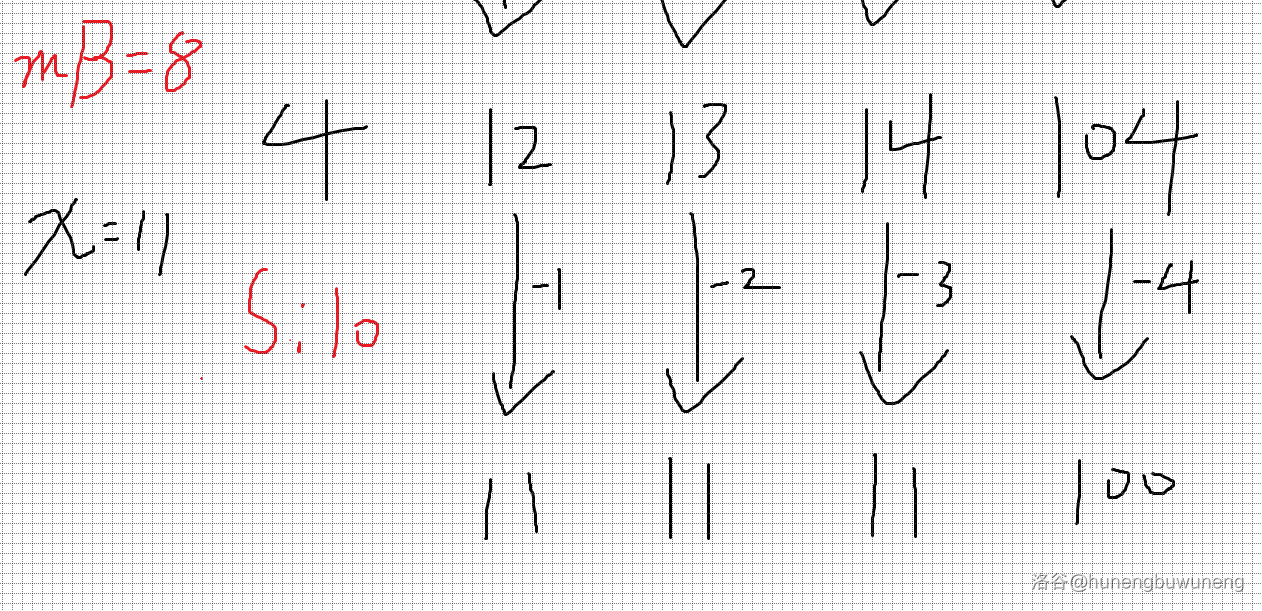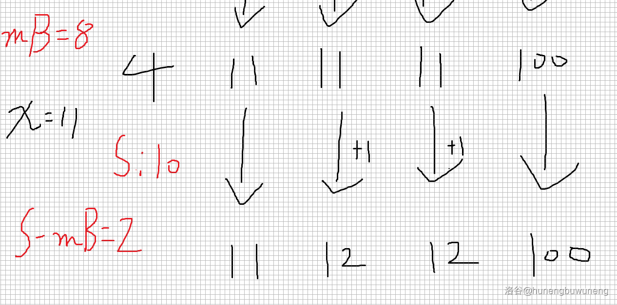那什么样的标准值是合格的呢?只要以该值为标准值时减的次数比 要多即可(多的部分后续调整),这样我们不难想到二分出最大合格标准值。(参照样例可确定该值为 )