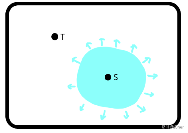 回顾 BFS 求两点间最短距离,比如我们需要在空旷的平面上求起点 到终点 的最短距离: