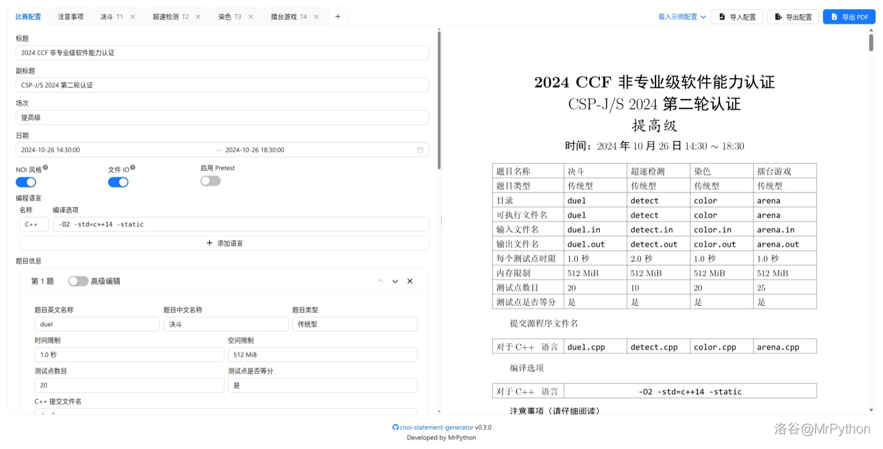 CNOI Statement Generator:快速生成美观的比赛 PDF