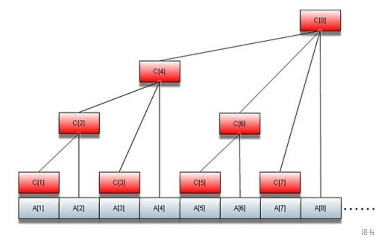 树状数组以二叉树为底层逻辑,二叉树是一种优秀的数据结构,许多以二叉树为底层的算法都可以将复杂度降为 级别,树状数组也是如此。