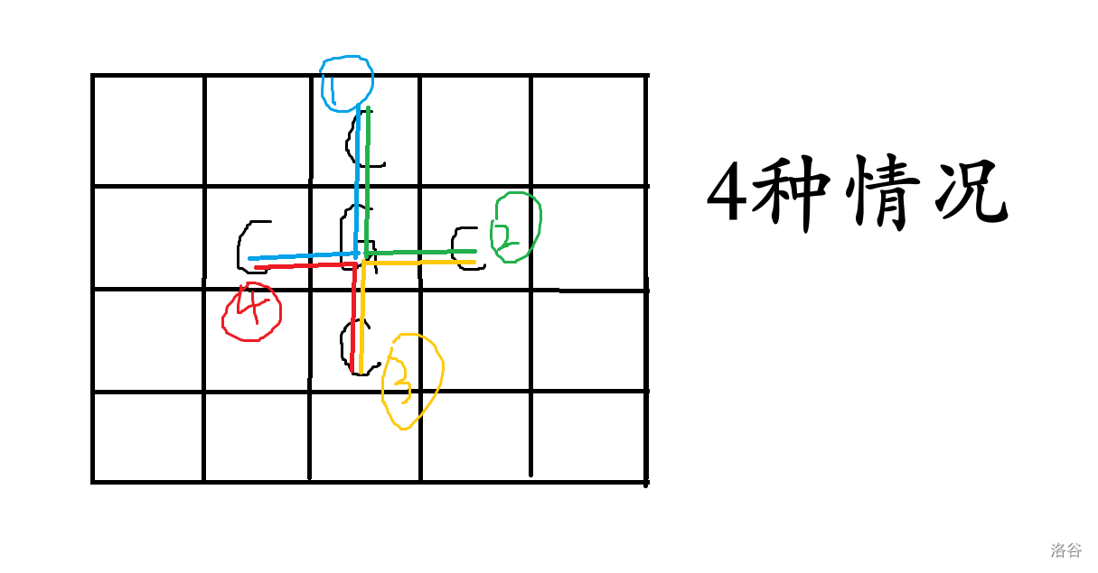 若两头奶牛及一块草地呈现拐角状(如下图),也能够见面。