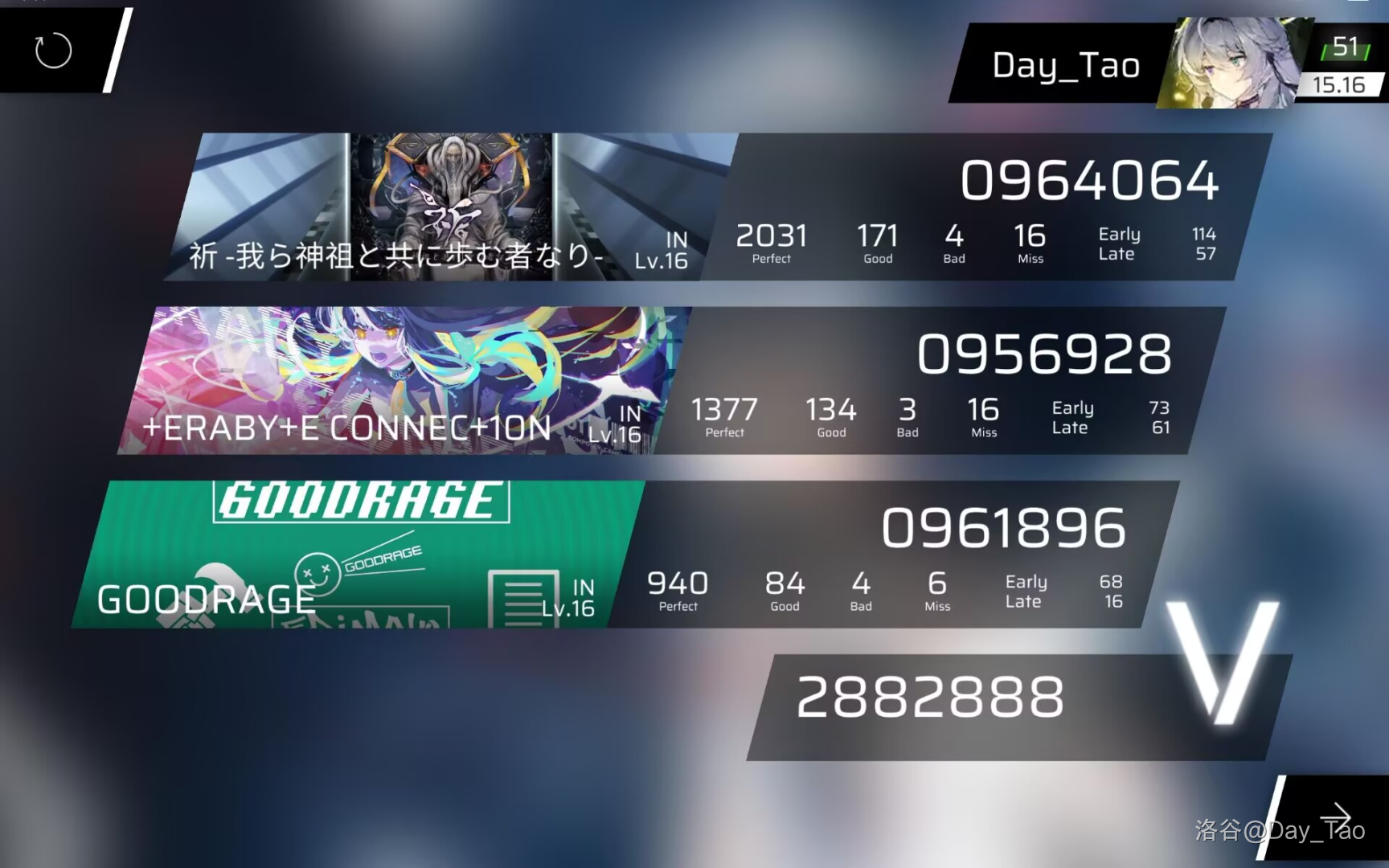 散场之后我问 Gold 是否要打板子,然后就去 2202 开音趴了。到吃完中饭之后闭幕式之前,成功将 rks 推到 15.58,成功换掉 b10,剩下的 b 也换了一部分。太牛了 /bx
