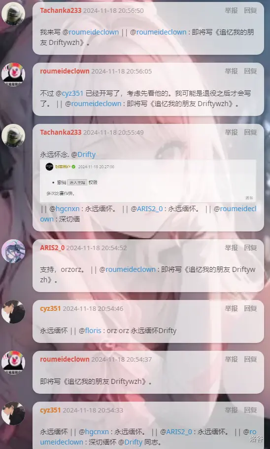 (上图是@Drifty为我们留下的最后的遗物,为P11281和P11277的题解)还记得@Drifty 在机房那忙碌的身影,一边忙碌着打着代码,一边抽空为我们讲着题目,想到此处,我不禁又潸然泪下。