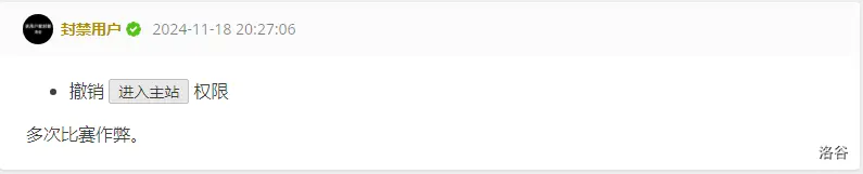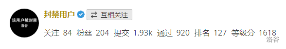 在今天的ICPC时,因题做不出来,回luogu水了下犇犇,发现我们的@Drifty 的头像有些不对劲。一个黑色的 顿时展现在眼前。当我点进去一看只见一个大大的封禁用户。