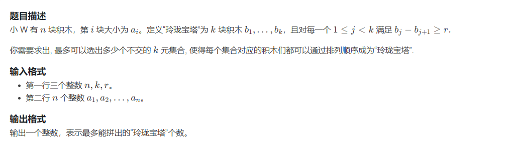 我们首先发现这道题要用二分,因为要求最大值,且没什么特殊方式直接判断是否构成一个新序列,所以只能二分(毕竟T1)。