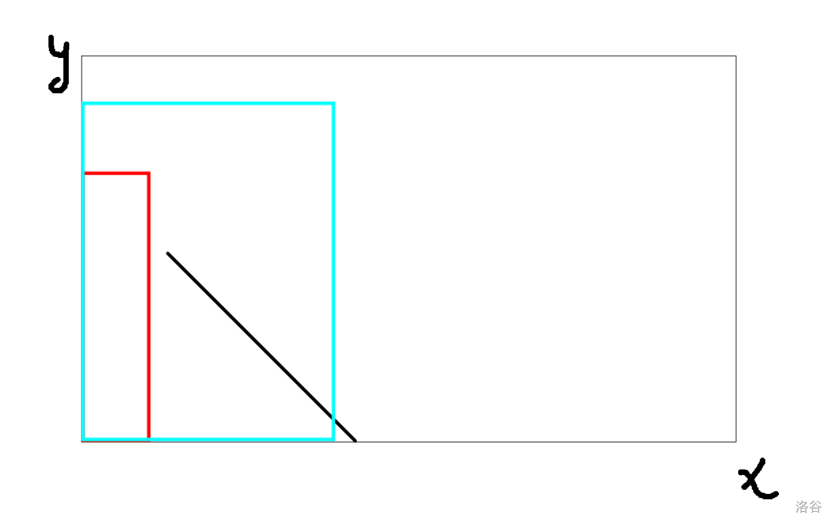 考察权值 的点集的形状:因为 在两维上都单调,所以这样的点是 轴上分别取一个前缀合法,即一个包含原点的子矩形,且这些矩形互相包含。我们称这样的矩形为关键的。每个关键的矩形 ,都能对 产生贡献。依此,就可以线性地求出每个斜线的答案了。预处理的复杂度就是 。