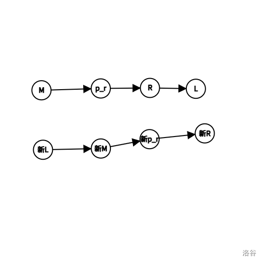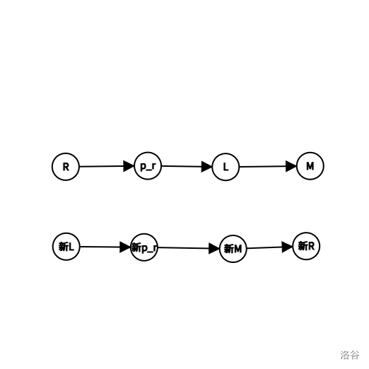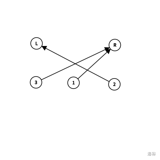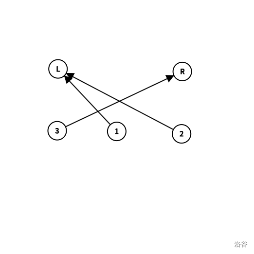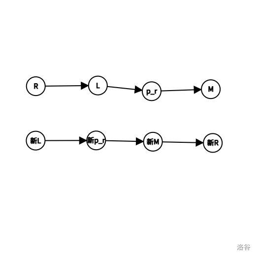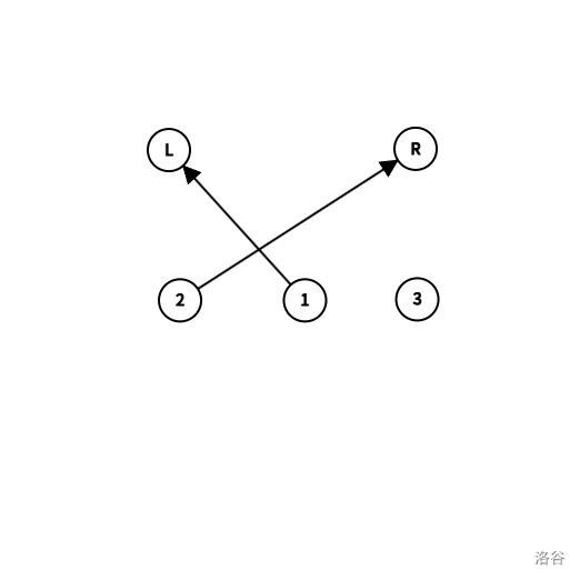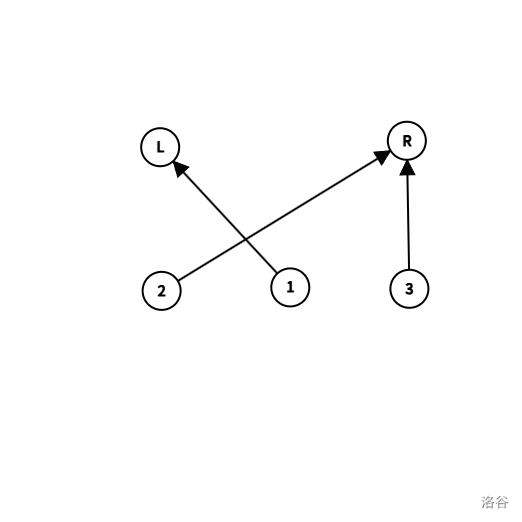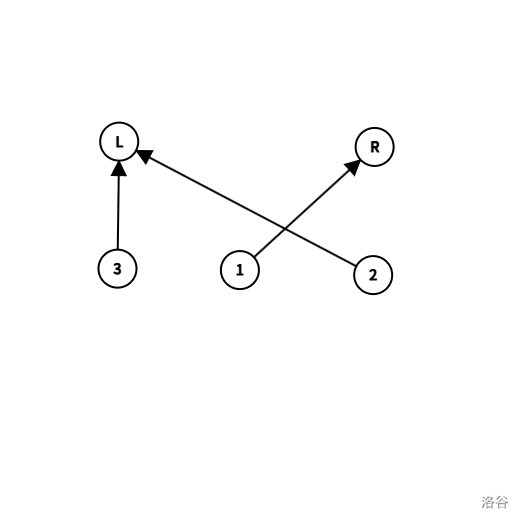 (下面的图中,指向 L 和 R 的边对应的是从左往右对应数的操作, 则是操作顺序,M 不操作就不连边,不考虑操作顺序)