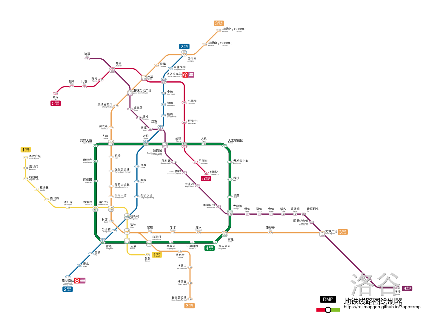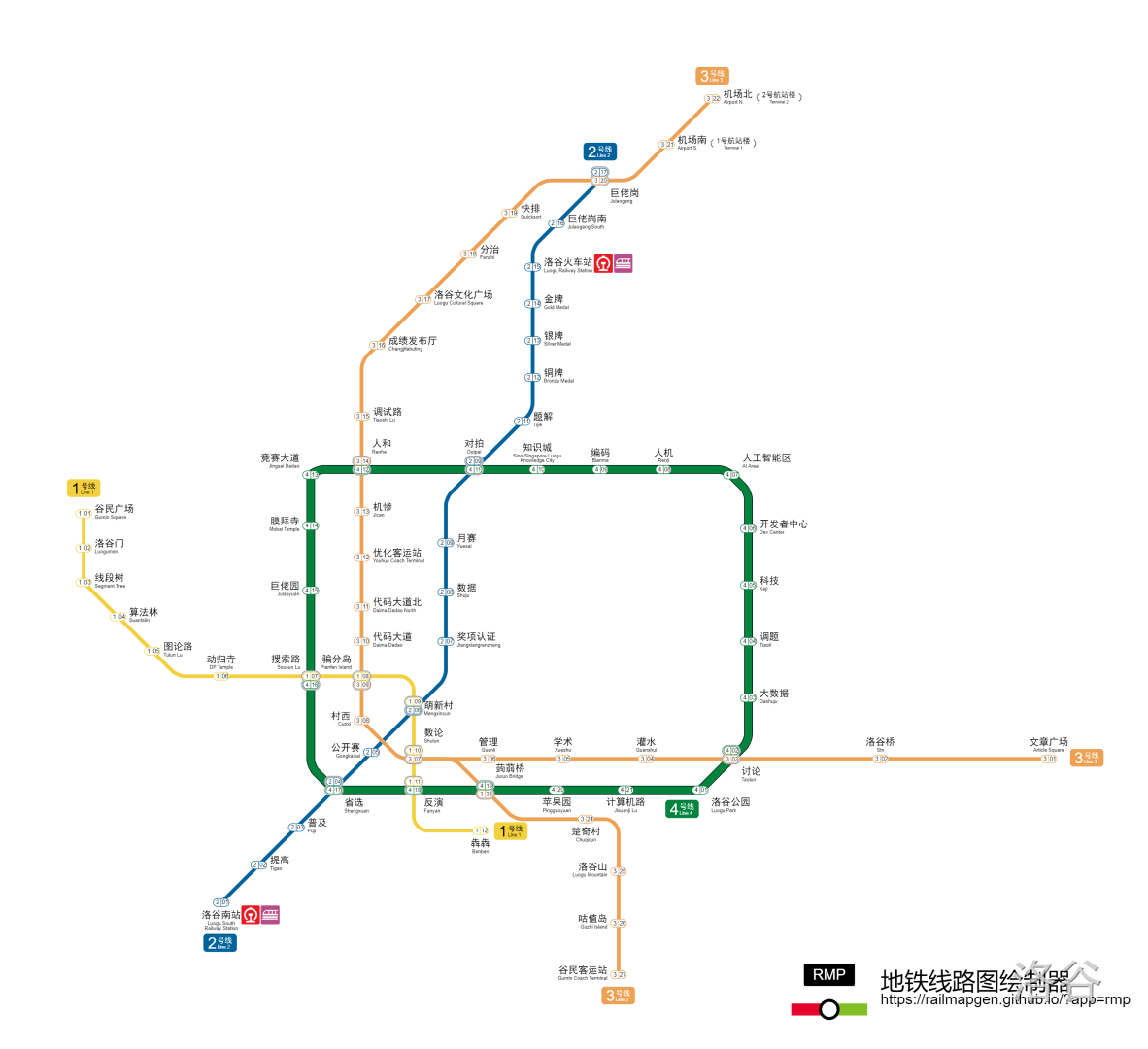 新增 1号线(洛谷门-犇犇),2 号线(洛谷南站-巨佬岗),3 号线(文章广场、谷民客运站-机场北),4 号线(洛谷公园-计算机路,环线)。