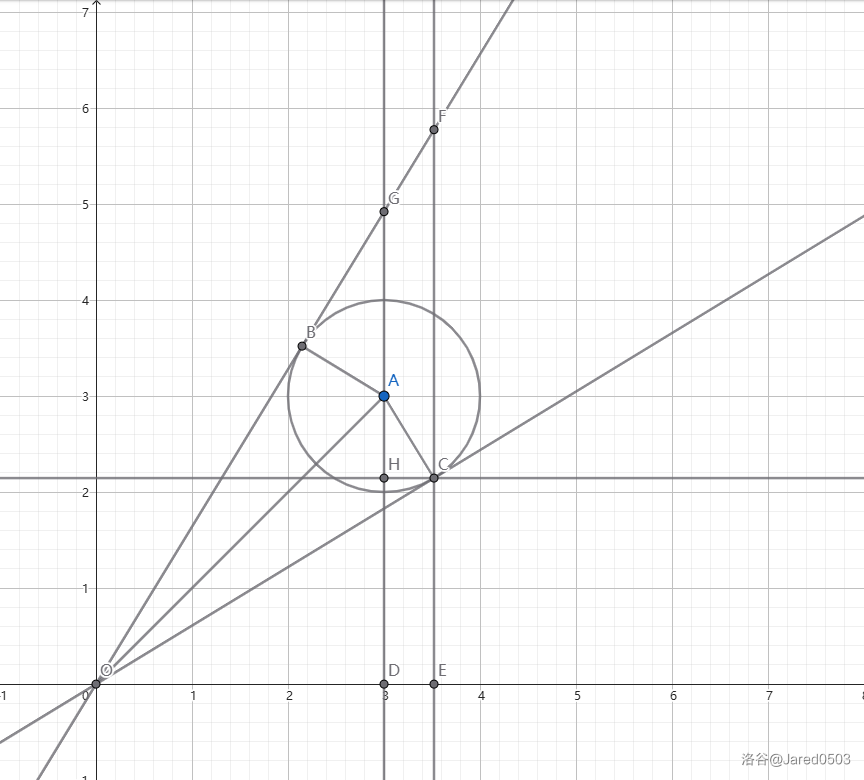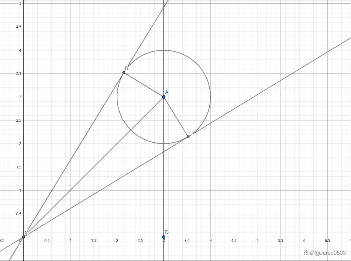 A(a,b),AC=r⇒AD2+OD2−r2=OA2−r2=a2+b2−r2=OC⇒tan∠AOC=a2+b2−r2r⇒tanα=tan2∠AOC,利用上面的和角公式就可以求出