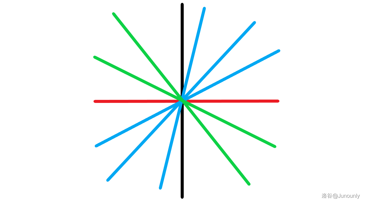 这是好处理的,令斜率最大的蓝线与 轴夹角为 ,斜率最大的绿线与 轴夹角为 ,取 即可。