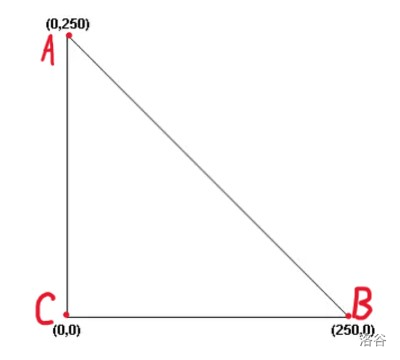 - 当给定的点在这个三角形的 直角边(即 以及 边)上时:则目标点在 斜边 上。