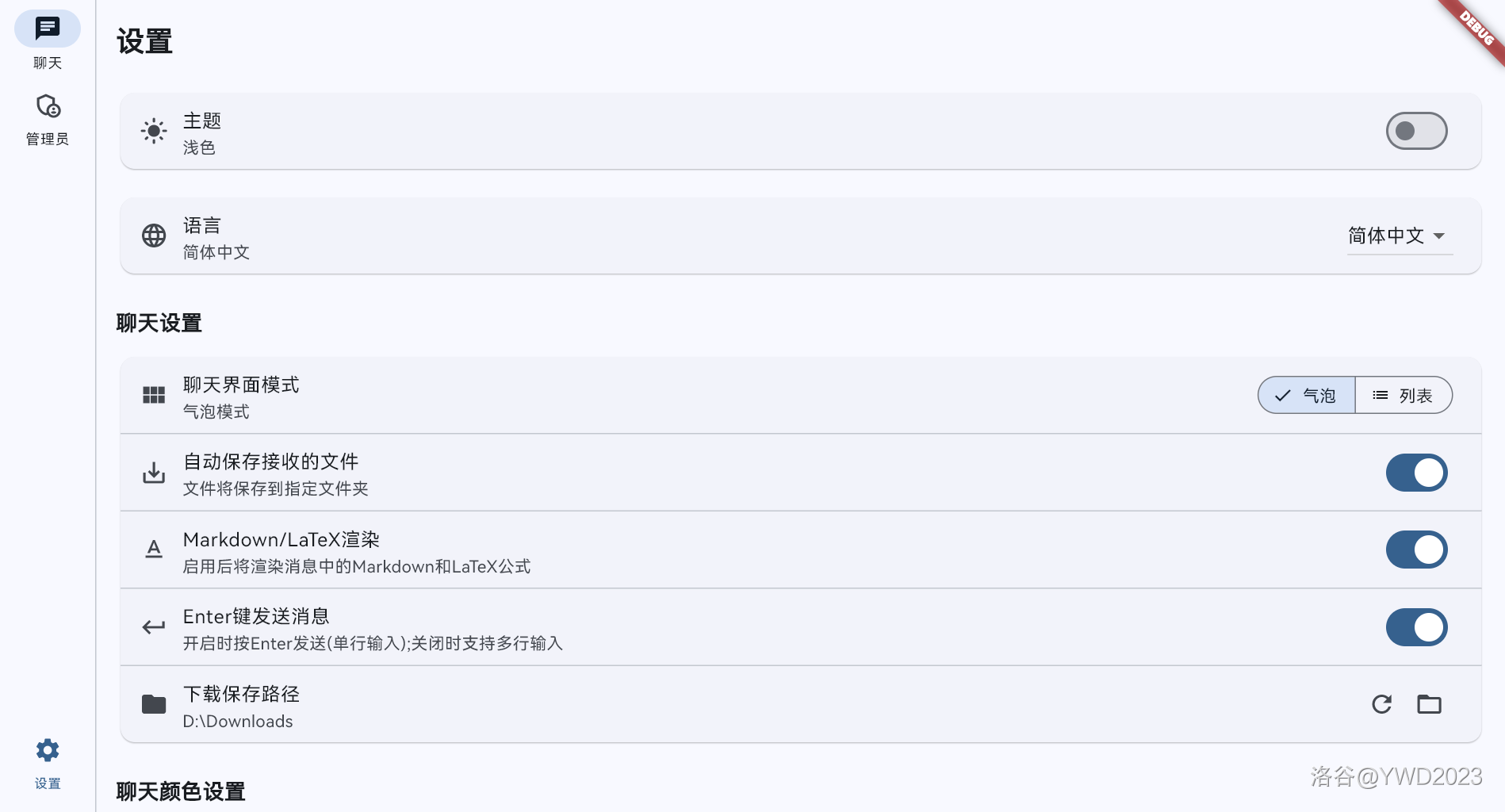 - 消息气泡(多行消息有亿点问题)、主题色、暗 / 浅色主题切换。