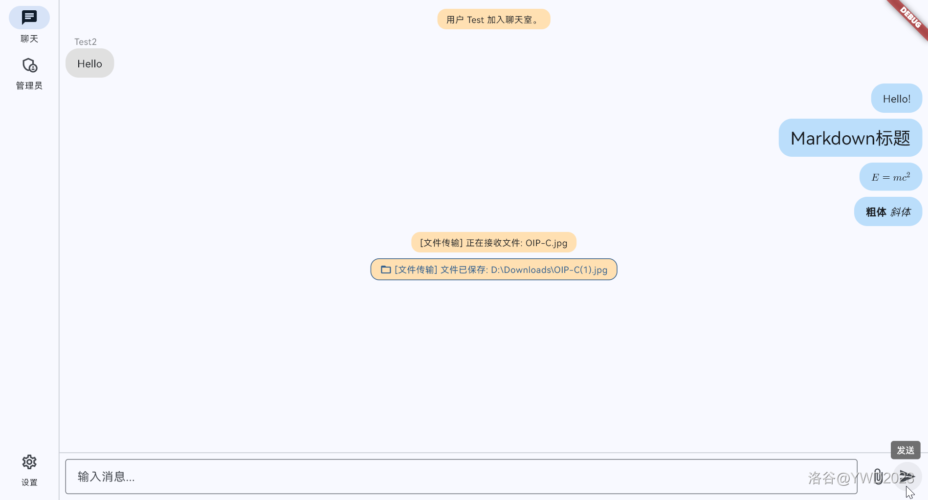 - 聊天框输入文本即可发送。