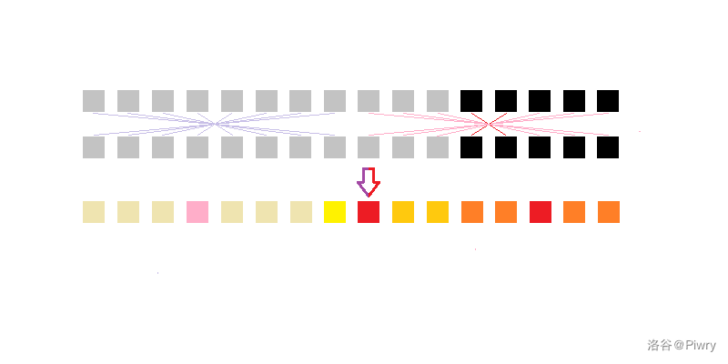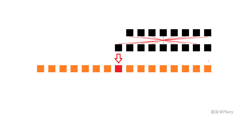 我们发现,它其实是以答案的位置为分界点,把序列分成了 包括答案位置的右边 和 不包括答案位置的左边 两段,并分别做了一个"对称"的特殊乘法。