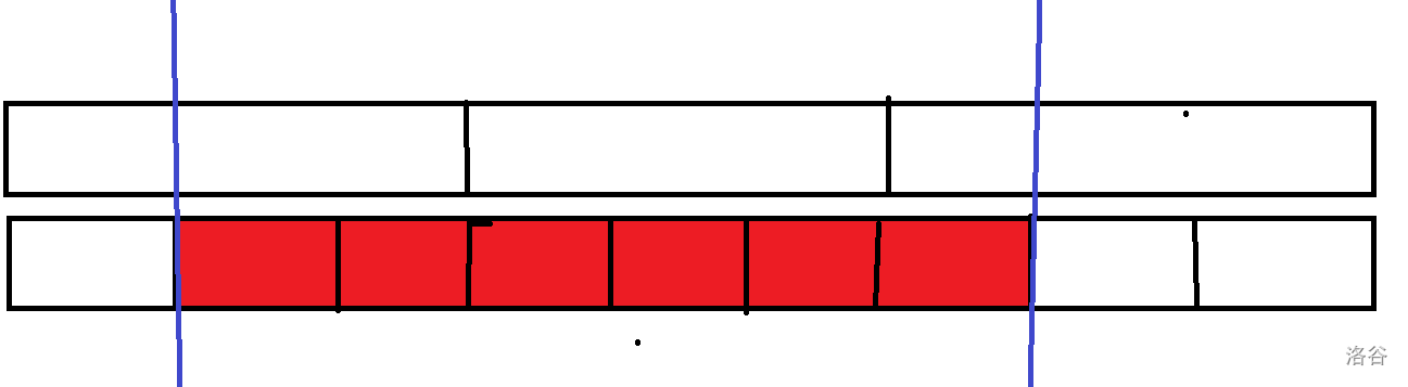 块长是 ,那么左边散块的数量一定不超过 个,如果超过 个那么就有整块了。右边同理。所以散块的数量一定不超过 ,也就是 级别。因此,这些散块就可以直接暴力更新,复杂度 。