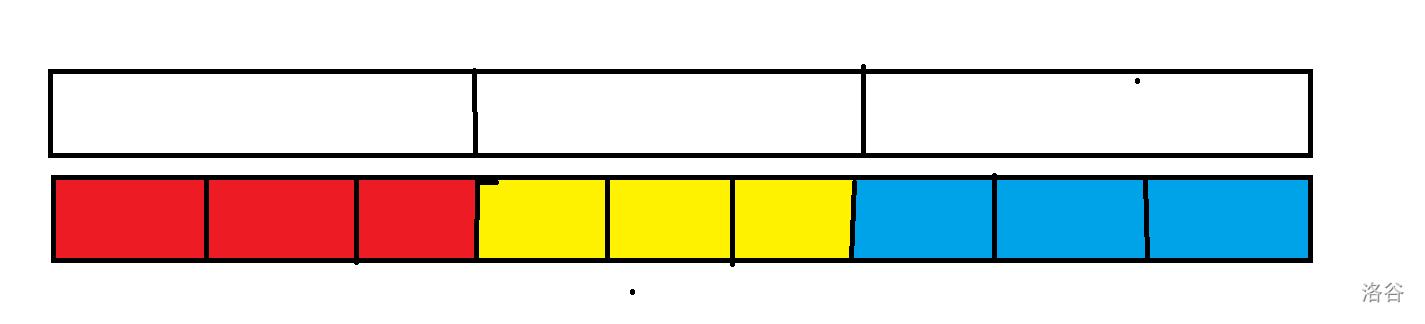比如红色的三个小块组成一个大块,黄的三个小块组成另一个大块。块长为 3。